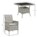 Enjoy alfresco dining with the Outsunny rattan dining set, a charming addition to any outdoor space. This 5-piece garden dining set, featuring four cosy chairs with washable cushions and a sleek table, promises comfort and style. Crafted from all weather double-strand half-round PE rattan with a robust steel frame, it's designed to weather the elements, making it a staple for any garden table and chairs collection.