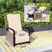 - Side tray table: Keep easy access to your essentials - whether a refreshing drink or favourite book. Relax in style with the integrated side table on this recliner garden chair.