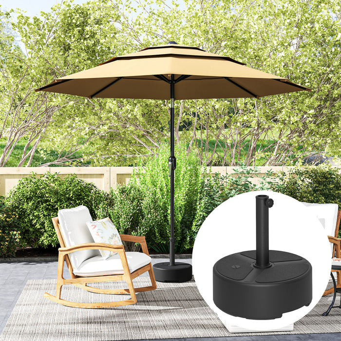 Ensure your parasol is always held firmly in place with the Outsunny parasol base. Made from strong anti-ageing HDPE plastic, it needs to be filled with sand or water to increase the total weight, keeping stability outdoors. Easy to set up with the screwed pole design. Combine our weighted umbrella base with an umbrella and create your own oasis under the shade.