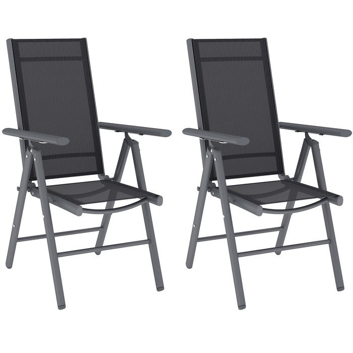 Discover the joy of outdoor relaxation with the Outsunny folding garden chairs. This set of two features breathable mesh fabric for cool comfort and a high backrest for lots of support. Effortlessly folded into a compact size, their lightweight aluminium frame resists rust and corrosion, making them your go-to for any sunny day!