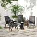 Never be stuck for a seat again, whether you're home or away, with this set of four folding chairs. Using metal with a powder coating for extra strength and durability, the frame is crafted into a classic outdoor chair style for simplicity, with texteline seats that allow your skin to breathe-great for the hotter days. With a tall, slightly tilted back, wide seat and mid-rise armrests, each seat will support you whilst keeping you comfortable for long periods of time.
