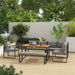 - Wood-plastic composite: The slatted tabletop prevents water buildup, promoting longevity and ease of use. The natural wood finish on the armrests and tabletop adds a touch of elegance and enhances the beauty of your outdoor space