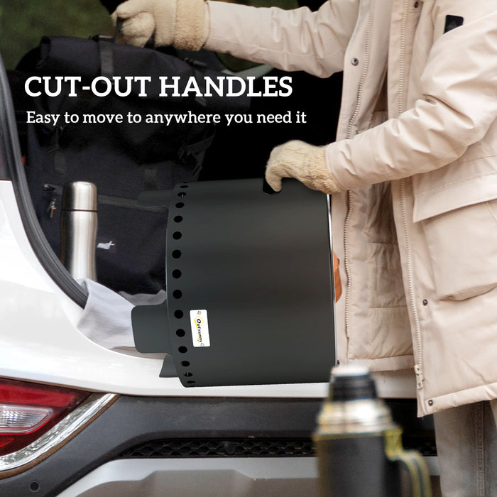 - Easy to move: This portable fire pit comes with two cut-out handles, making it convenient to transport to any outdoor gathering or camping trip.