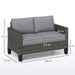 Outdoors times with company, made comfortable with this Outsunny outdoor loveseat. A galvanised steel frame with powder coating means a strong core, wrapped in tough plastic wicker for a protective outer. Thick cushions ensure comfort; patio sofa is complete with adjustable feet so it stands steady and balanced.