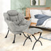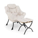 Experience unparalleled comfort with our lazy chair with ottoman! This oversized sherpa lounge accent armchair with ottoman is crafted to offer both a spacious seating solution and a convenient lounging option. The foldable ottoman with a double-sided cushion provides versatile comfort, while allowing for easy storage when not in use. With the straps, the cushion can be secured to the stool without slipping. The sturdy metal legs with non-slip pads enhance overall stability and protect your floors from scratches. For convenience, the leisure sofa is equipped with a side storage pocket, perfect for keeping books or remote controls handy. Whether placed in your living room, bedroom or study, this modern upholstered lazy chair fits perfectly. Bullet Point: Full Wrapped Comfort: Featuring a cozy head pillow, an inclined backrest, ergonomic armrests and a wide seat, this oversized lazy chair with ottoman can elevate your relaxation experience. Plus, the chair is filled with thick and soft PP cotton and covered with skin-friendly & fluffy sherpa fabric for ultimate comfort. Sturdy Construction: Supported by high-strength metal legs with powder coating, this reading chair and stool ensure great stability and durability. In addition, the anti-slip foot pads allow you to enjoy your leisure time without any worry of slipping or damage to your floors. Thoughtful Design: The accent chair comes with a side storage pocket, providing a convenient place to store your books, controllers, or any other items. The foldable ottoman includes a double-sided cushion (one side is sherpa fabric, the other side is Oxford cloth) for flexile use. Versatile Use: This multipurpose lazy chair with ottoman is perfect for reading, watching TV, playing games or resting in the living room, bedroom or anywhere an extra touch of coziness is desired. The folding footrest caters to your comfort needs while making it ideal for small spaces. Easy Assembly & Cleaning: This upholstered leisure sofa with folding stool can be easily put together in a few steps. There are straps to secure chair & stool cushions, keeping them in place. Moreover, the zippered sherpa cover is convenient to remove and wash.