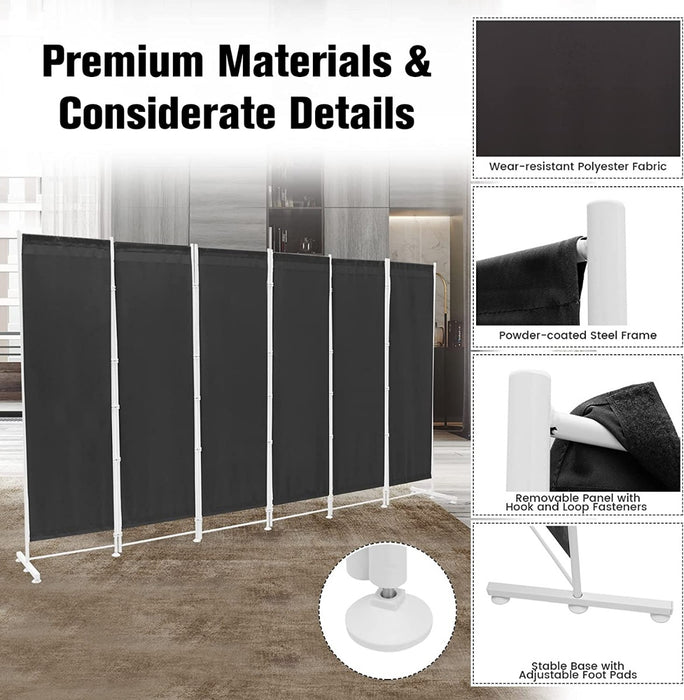 Panel Room Divider, Model #6 - Adjustable Foot Pads, Sleek Black Design - Ideal for Space Management and Privacy Enhancement