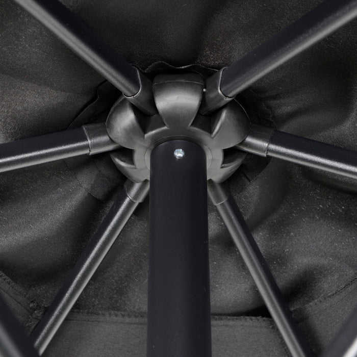 The intuitive push-open feature allows for quick and convenient operation. With a simple upward push, the expansive canopy glides open and secures into place. Its robust aluminum frame is powder-coated, ensuring a stalwart and rust-resistant core that stands up steadfastly against the elements. Engineered with six support ribs, our garden umbrella offers unmatched structural integrity and resilience.