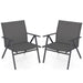 Built with sturdy metal frames reinforced with crossbars and triangular structures, these patio furniture chairs ensure stability and long-lasting use in your garden, porch or backyard setting. Additionally, the ergonomic design includes a 108° inclined backrest, wide seat and cozy armrests, promising optimal relaxation. Moreover, the breathable, fade-resistant and quick-drying mesh fabric keeps you cool and ensures easy maintenance. Equipped with adjustable foot pads, these outdoor furniture chairs adapt seamlessly to various terrains, making them a perfect fit for different outdoor areas, from balconies to lawns. Ergonomic Seating: Designed with 108° inclined backrests, cozy armrests and wide seats, these patio chairs ensure optimal comfort and support for those outdoor leisure times. Selected Fabric: These outdoor chairs feature premium fabrics that are breathable for a cool feeling and boast fade-resistant qualities for durability. Plus, the fabrics are also quick-drying for easy maintenance. Sturdy Construction: Crafted from robust metal frames and reinforced crossbars, these lawn chairs hold up to 160kg respectively for stability and reliability. Moreover, the side triangular structures promise extra support. Wide Application: These patio bistro chairs are equipped with adjustable foot pads, making them suitable for various outdoor terrains, from uneven garden paths to your cozy front porch. Please avoid rain exposure for prolonged service life. Simple Assembly: The backrests, side frames and seats of these outside armchairs are pre-assembled. All you need to do is connected each piece with included screws for easy assembly.