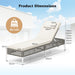 The 6-level adjustable backrest allows you to customize your comfort. Constructed from exquisite PE wicker, the reclining sun lounger not only offers outstanding durability, but also adds a touch of sophistication to your outdoor decoration. Note: Please always keep the chair dry to extend service time. Moreover, the removable cushion and headrest bring added comfort. The sturdy chaise lounge has L-shaped metal legs and adjustable foot pads for strong and steady support. You can place the lounge chair in the poolside, patio, backyard or other outdoor place. Selected PE Rattan: The patio chaise lounge chair is made with mixed gray PE rattan that is sun-protective and fade-resistant for long-lasting outdoor use. The well woven PE rattan also brings elegance and charm to various outdoor areas. Adjustable Backrest: Featuring a 6-level adjustable backrest, the patio recliner provides personalized relaxation. You will find the optimal angle for reading magazines, sunbathing, napping, or relaxing. Ultimate Comfort: The outdoor lounge chair comes with a padded cushion and headrest with elastic sponge for cozy sitting or lying. The removable zippered covers ensure easy maintenance. Plus, the elastic band firmly secures the headrest. Stable Structure: The heavy duty metal frame makes the lounger strong enough to support up to 180 kg. Moreover, the L-shaped metal legs and adjustable foot pads allow for excellent steadiness and stability. Wide Application: The patio chaise lounge is a perfect addition to different outdoor occasions, such as backyards, poolisdes, lawns, and more. Note: Please avoid rain exposure for prolonged service life.