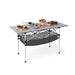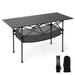 Color: Black/Silver Material: Aluminum, Metal, Oxford Fabric Overall Dimension: 119 x 55 x 69 cm (L x W x H) Dimension of Carrying Bag: 30 x 22 x 61 cm (L x W x H) Weight Capacity: 100 kg Net Weight: 5.5 kg Box QTY: 1(May vary by batch) Package Includes: 1 x Folding Camping Table 1 x Carrying Bag 1 x Mesh Basket 1 x Instruction