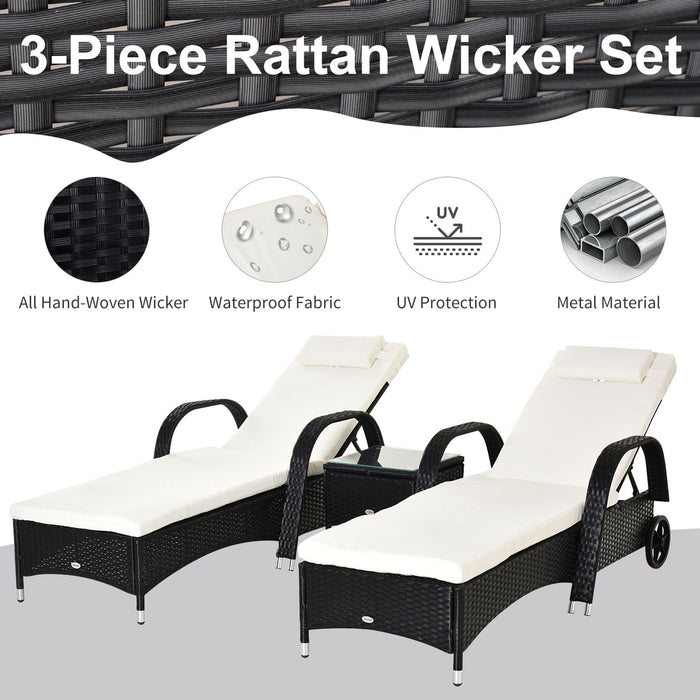 This luxurious set by Outsunny is all-inclusive, with two adjustable loungers, one side table, and cozy cushions. The ensemble is ready to transform any indoor or outdoor area into a haven of comfort. Plus, the back of each lounger features two wheels, making relocation a breeze.
