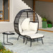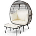Boasting a generous 110 cm width and a robust X-shaped metal structure, the lounge chair supports up to 205 kg, providing both space and stability. The well-woven PE rattan ensures durability while remaining airy and comfortable. Enjoy the luxurious feel of soft, elastic sponge-filled cushions, complete with smooth zippers for hassle-free maintenance. The versatile ottoman of this furniture set can serve as a footrest, extra seating, or a quaint coffee table. Designed elegantly to enhance any indoor or outdoor space, this wicker lounge set is the ideal choice for upscale relaxation and practicality in your living room, patio, or backyard. Extra-Large Egg Chair Set: This oversized egg chair features a spacious width of 110 cm, substantially larger than standard lounge chairs. The sofa chair boasts stable X-shaped metal structure and adjustable footpads, supporting up to 205 kg. Long-Lasting Rattan Elegance: Crafted from well-woven mix brown PE rattan, this egg chair and ottoman set is anti-fading and sunproof for long-lasting use, and quite breathable to sit. Ultra-Comfortable Cushions: The egg chair set is equipped with multiple cushions and pillows, each filled with soft and elastic sponge to make your whole body fully relaxed. Moreover, the smooth zippers allow for easy removal and cleaning of the cushion covers. Multi-Purpose Ottoman: The accompanying ottoman of this patio sofa set serves not only as a footrest but can also be utilized as an additional seat or a small coffee table, making it a versatile addition to any room or outdoor space. Indoor and Outdoor Applicable: With elegant design, this wicker lounge chair and ottoman set is perfectly suited for both indoor and outdoor environments such as living room, patio or backyard. Dimension of egg chair: 110 x 82 x 145 cm (L x W x H). Dimension of ottoman: 69 X 40 X 38 cm (L x W x H).