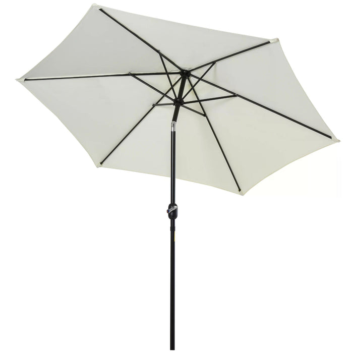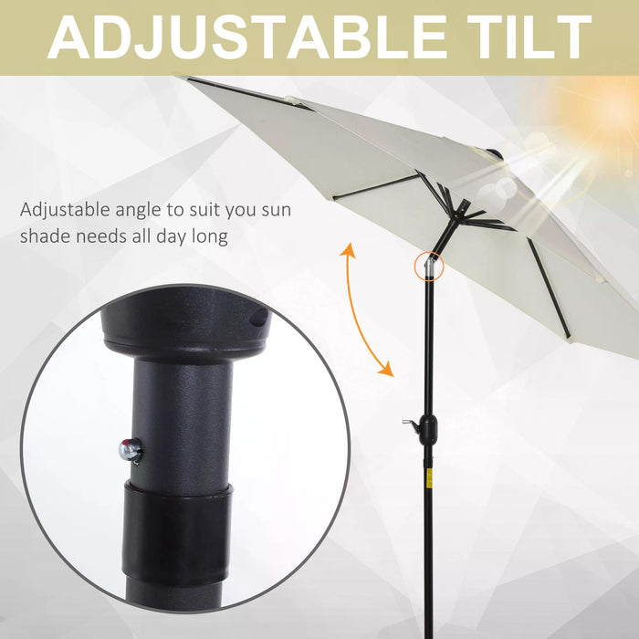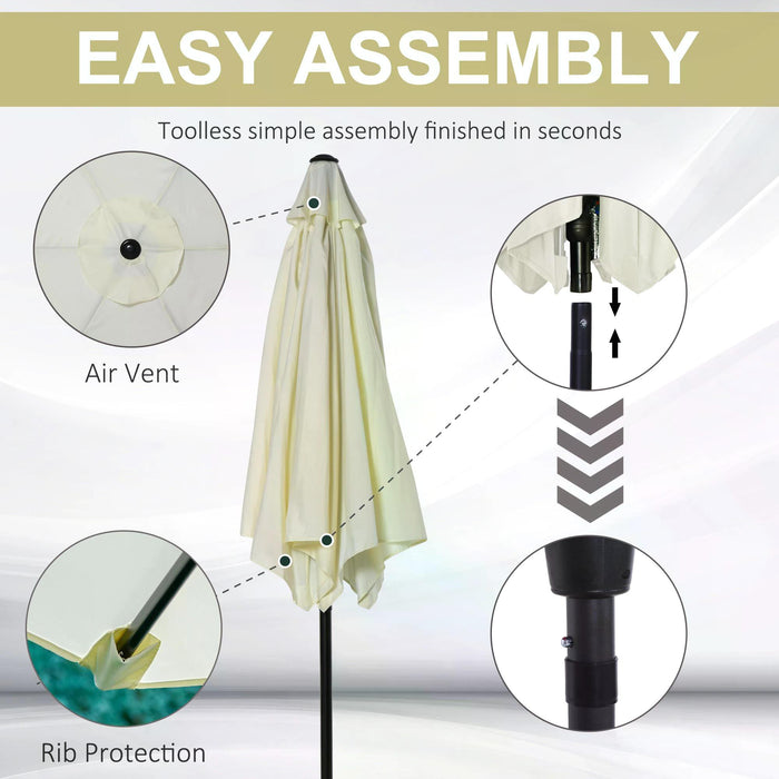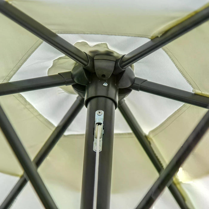 The umbrella features a push-button tilt function, enabling you to adjust the canopy's angle with ease, ensuring continuous protection from the sun as it moves throughout the day. The canopy is supported by six metal ribs, offering both resilience and stability. A single wind vent at the top enhances airflow and reduces wind pressure to provide a sturdy, secure hold.