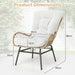 Enjoy optimal relaxation with this ergonomic wicker chair for both indoor and outdoor occasions. Crafted from premium PE rattan, the armchair is both long-lasting and elegant. The leisure chair also comes with a cozy, long cushion that supports both the seat and back, secured with ties and equipped with a zippered cover for easy maintenance. The ergonomically contoured seat merged with a robust metal frame assures support up to 180 kg, providing a perfect blend of comfort and durability. Whether placed in your garden, porch, or indoor spaces, this wicker chair seamlessly integrates with any decoration, promising a stylish yet functional addition to your home. Appealing Rattan Design: This patio chair features well-woven PE rattan in natural color, bring more elegant touch. The rattan seat is also anti-fading for long-lasting outdoor use. Cozy Long Cushions: Equipped with a 1-piece long cushion featuring soft and elastic fillings, this rattan dining chair provides cozy support of both seat and back. The zippered cushion cover is simple to maintain, while the fixing ties ensure firm placement. Ergonomically Designed Seat: With 57 cm spacious seat, ergonomic backrest and curved armrests, this leisure armchair follows an ergonomic structure. The comfy and large seat cradles your body, reducing strain during extended periods of sitting. Ultra-Strong Support: Built with heavy-duty metal frame, this outdoor chair can support up to 180 kg, ensuring durability and stability. Moreover, the reinforced screw connection and adjustable footpads strengthen the overall structure. Indoor & Outdoor Application: Versatile and functional, this armchair is ideal for various spaces such as backyard, porch, balcony or even living room, adapting seamlessly to both indoor and outdoor places.
