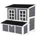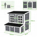 Discover the charm of the PawHut large chicken coop, a spacious sanctuary featuring a main house and a 3-compartment chicken nesting box with secure latches. Dual doors and a convertible ramp ensure your chickens can roam freely and safely. Crafted from fir wood with a waterproof paint finish and elevated for protection, this duck house blends functionality with comfort for 4-6 chickens.