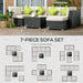 Our set comprises two modish corner chairs, four chic middle chairs, a multifunctional footstool, and a sleek coffee table, all of which can be arranged in a configuration to suit your space and style. Whether hosting a social gathering or enjoying a quiet afternoon outside, this set's flexible design caters to your every need.