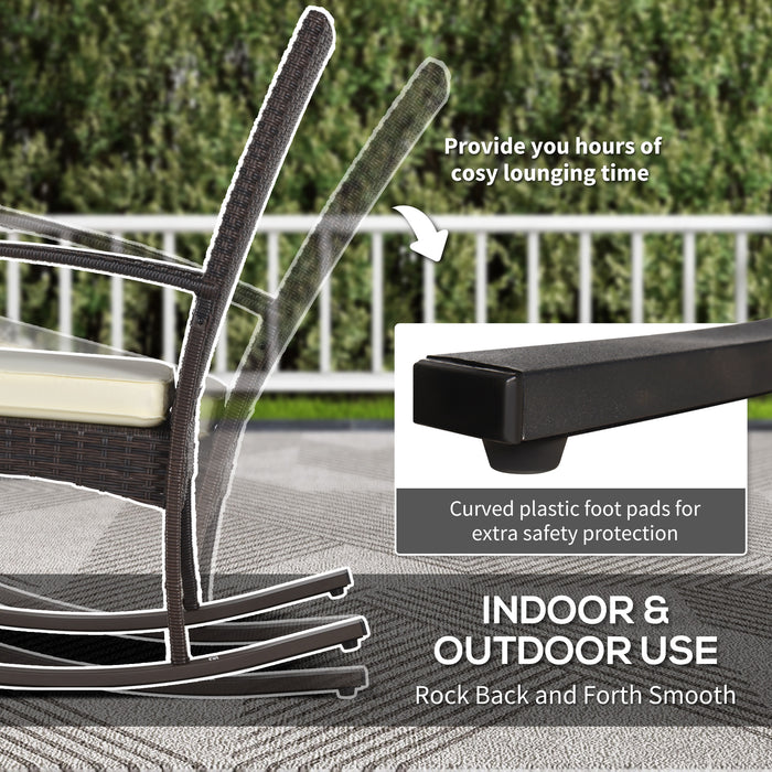 The foundations of this garden oasis are built upon a sturdy metallic frame, boasting a powder-coated and rust-resistant finish that maintains its integrity season after season. We've expertly woven durable PE wicker around the frame, creating a garden rocker that is not only easy to maintain but also stands up to UV exposure and mild moisture without a hitch.