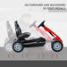 Our go-kart is designed with a powder-coated steel frame and high-quality plastic components, creating a robust vehicle that can support up to 30 kg. It's crafted to be resilient and reliable for countless hours of fun. With its smart pedal mechanism, this go-kart moves seamlessly both forwards and backwards, allowing kids to navigate through their racing escapades with ease and excitement.