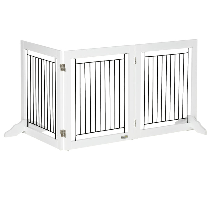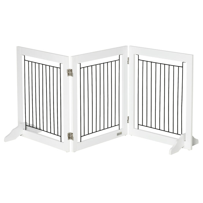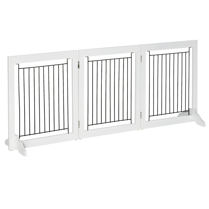 This pet barrier isn’t just strong, it’s also incredibly flexible. Consisting of three panels secured by robust hinges, you can easily adjust the shape to meet the unique layout of your space. Whether you need a straight line, an angled partition, or a fully enclosed pen, this pet gate is up to the task. It's an indispensable tool for managing your pet's access in the home.