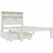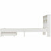 The bed boasts a sleek wooden frame that houses a variety of storage spaces. The uniquely designed headboard mimics a bookshelf, featuring six storage compartments perfect for holding your favorite reads, decorative items, or personal accessories. Below, a spacious drawer glides effortlessly on wheels, presenting additional storage without taking up extra space.