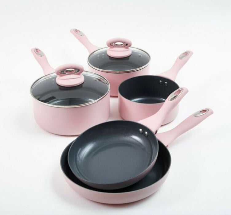 Pink Ceramic Non-Stick Pans - 5 Piece Cookware Set - Cermalon Pink- Suitable for Induction & All Hob Types