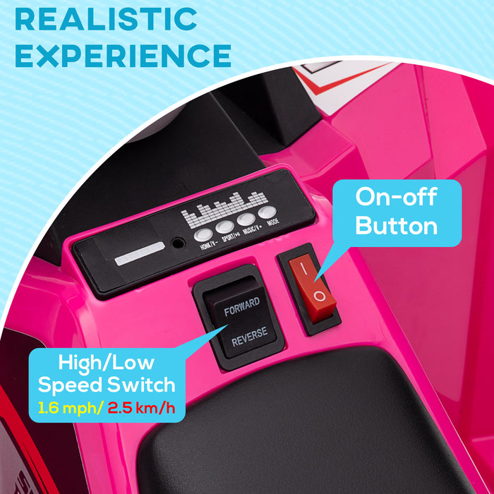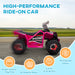 The quadbike's non-slip handlebars afford a firm and comfortable grip, enabling your child to steer with confidence and precision. A simple press on the foot pedal propels this vehicle forward or in reverse, adding to the joy of maneuvering their own ride.