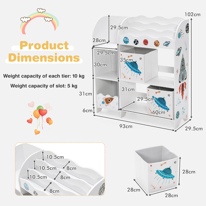 Introducing the ultimate solution to cluttered spaces in your child's playroom or bedroom! Say goodbye to scattered toys, books, and stationery with our all-in-one organizer, specifically built with your child's needs in mind. Not only does it serve as the perfect tool for teaching kids how to tidy up, but its delightful aesthetics are sure to be a hit with the little ones.
