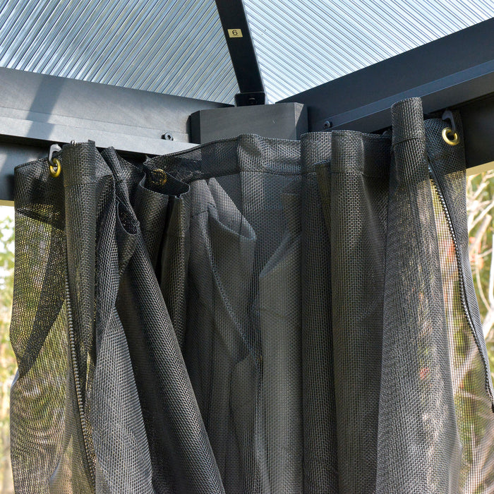 For moments when privacy or protection is desired, this gazebo comes equipped with removable curtains that can be easily drawn. A second layer of fine mesh netting acts as a barrier against insects, ensuring uninterrupted leisure within the shelter of your garden retreat.