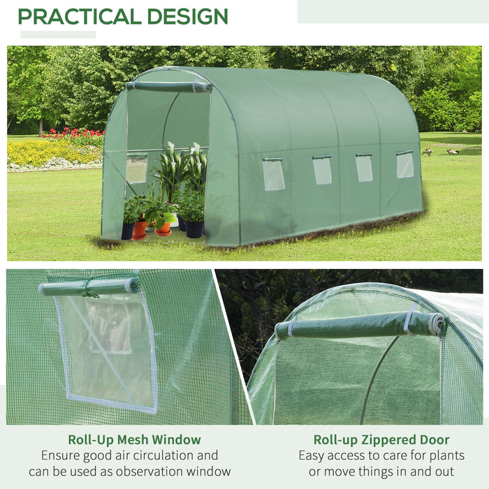 With a height of 194 cm and a length that spans 380 cm, the greenhouse's dimensions ensure there's ample room for both plants and gardeners to move freely. Climate control is at your fingertips thanks to the smart design of roll-up windows - modifying your plant's environment is both quick and straightforward. The zipped door further simplifies entry and exit, making your gardening tasks more efficient.