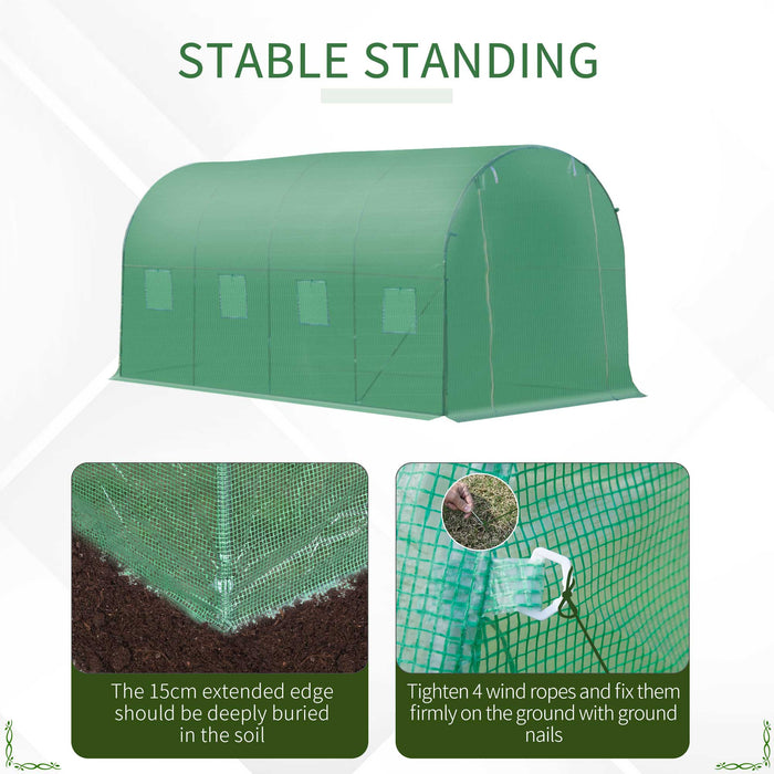Braced by a sturdy galvanized steel frame, this greenhouse promises longevity and durability. The frame guarantees your green haven remains upright and resolute, withstanding the typical wear and tear of outdoor conditions. To further enhance stability, the package includes four guy ropes and an equal number of ground stakes, all essential in keeping your greenhouse firmly rooted to its foundation.