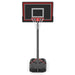 Colour: Black Material: HDPE, Metal Range of Rim Height:230-305 cm Range of Total Height:387-362 cm Backboard Dimensions:110 x 71 cm (L x W) Base Dimensions:109.5 x 72 x 17 cm (L x W x H) Inner Diameter of Rim:45 cm Net Weight:19.6 kg Box Qty: 1 Package Includes: 1 x Portable Basketball Hoop 1 x Instruction manual