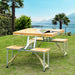 Celebrate the great outdoors with a table set that simplifies your leisure time. Emphasizing ease and comfort, this picnic table and chair ensemble is an indispensable addition to your open-air experiences. Reach for this essential space-saver and enjoy every moment beneath the sun or stars.