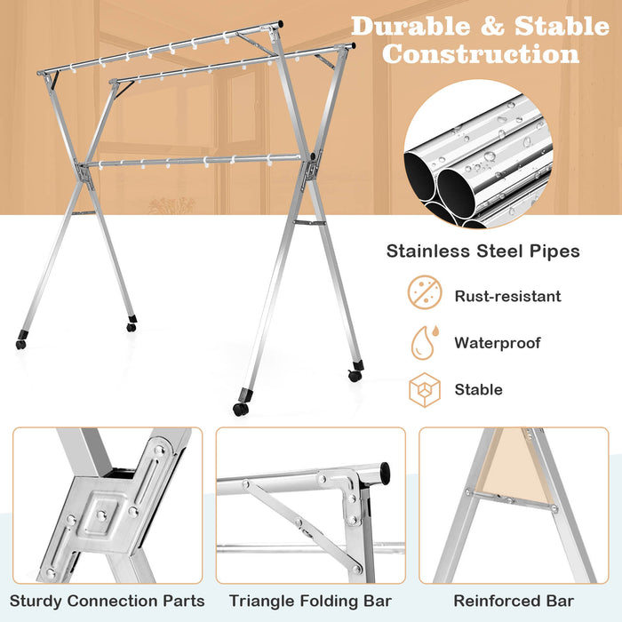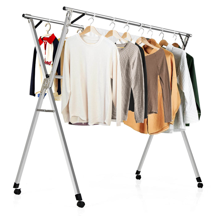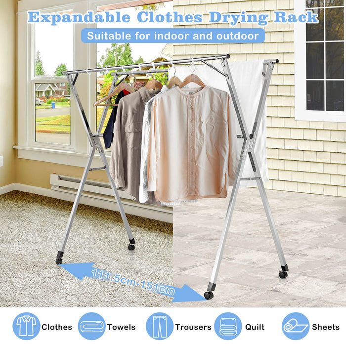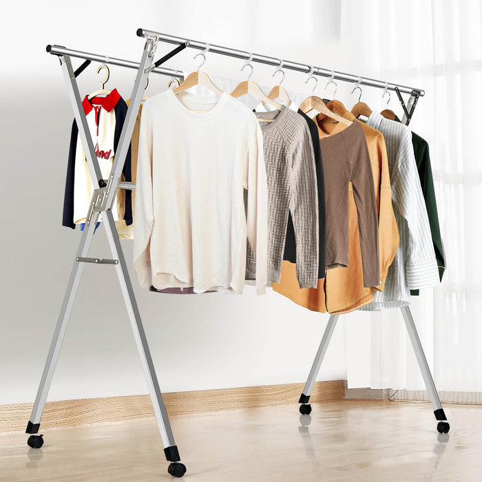 Constructed from robust stainless steel, our rack ensures durability and resistance to rust. Its sturdy X-frame and anti-wobble bars present a stable platform for your clothing, promising longevity and resilience. With no need for installation, setting up this reliable aid takes mere moments, ready to serve you both indoors and outdoors.