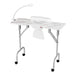 Colour: White/Black Material: Metal, MDF, PU, Sponge, Oxford Fabric Product Dimensions: 90 x 40 x 77 cm (L x W x H) Folding Dimension: 90 x 40 x 21 cm (L x W x H) Carrying Bag Dimension: 92 x 45 x 15 cm (L x W x H) Net Weight: 10 kg Weight Capacity: 30 kg Length of Power Cord of Electric Dust Collector: 103 cm Power of Electric Dust Collector: 6W Voltage of Electric Dust Collector: 220-240V/50Hz Air Volume: 100 CFM Length of Power Cord of Lamp: 153 cm Power of Lamp: 7W Voltage of Lamp: 5V Color Temperature: 3000K/4200K/6000K Box QTY: 1(May vary by batch) Package Includes: 1 x Manicure Table 1 x Lamp 1 x Electric Dust Collector 1 x Wrist Pad 1 x Carrying Bag 3 x Dust Bags