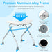 Experience true contentment with our shower seat's ergonomic contour, designed for supreme sitting comfort. Coupled with its sturdy frame made from lightweight aluminum alloy and a reinforced cross-bar for additional support, the chair doesn't compromise on durability. It boasts an impressive load-bearing capacity, making it a mainstay in any bathroom.