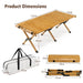Each package includes a foldable bamboo camping table, a durable carrying bag, and a user-friendly instruction manual.