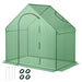Our mini walk-in greenhouse measures 180 x 100 x 170 cm (L x W x H) and comes with a roll-up zippered door for easy access, making watering and cultivating plants a breeze. The protective cover is crafted of reliable PE material, providing better sun protection and heat preservation while preventing small animals from biting your lovely plants. The frame is constructed from solid metal tubes with PE coating, which could withstand high temperatures and resist weather damage, ensuring long-lasting outdoor use. For added stability, you can put stones to weigh down the overlong cover, and secure the greenhouse with ground stakes and wind ropes. Additionally, there is a large door and a top window, making it easy to control the interior temperature while increasing cross airflow. Elevate your gardening game with this walk-in greenhouse! Bullet Points: Sturdy and Reliable Construction: This mini walk-in greenhouse is constructed of solid metal tubes, providing a reliable support system that will withstand the elements year after year. Furthermore, the tubes are coated with PE, ensuring good resistance to rust and high temperatures. Heat-Reservation PE Cover: The garden warm house boasts a premium PE grid cover, offering excellent protection against rain and sun exposure. The protective cover could also maintain proper temperature and humidity levels, keeping your plants thriving. Large Planting Space: With generous dimensions of 180 x 100 x 170 cm (L x W x H), this large walk-in greenhouse offers ample space for various plants, such as vegetables, fruits, herbs, flowers, potted plants, seedlings, and more. It could shield your plants from cold temperatures to extend the growing season. Excellent Windproof Performance: With its overlong cover, you can secure it with stones or bury it in the soil for added reinforcement. Additionally, the greenhouse tent is equipped with 4 wind ropes and 4 metal stakes for fixation, preventing wobbling or moving in windy conditions. Easy Access and Good Ventilation: This portable greenhouse comes with a large roll-up door, measuring 75 x 145 cm (W x H), providing easy access to move things in and out and take care of plants. Additionally, there is a top window for ventilation, creating a conducive environment for optimal plant growth.