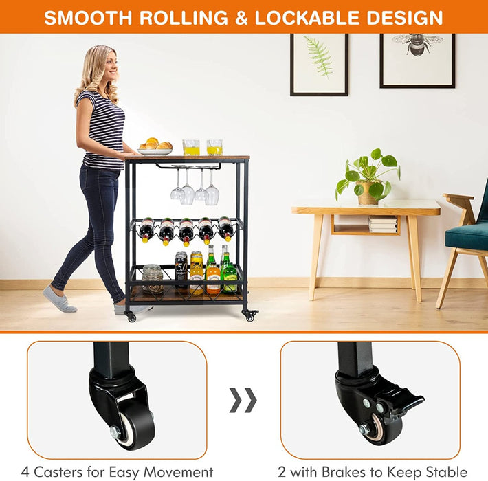 The four universal casters grant you the freedom to glide this cart throughout your home. Whether you're moving from the kitchen to the dining area or serving in the living room, the journey is effortless. The integrated brakes will hold the cart firmly in place whenever needed.