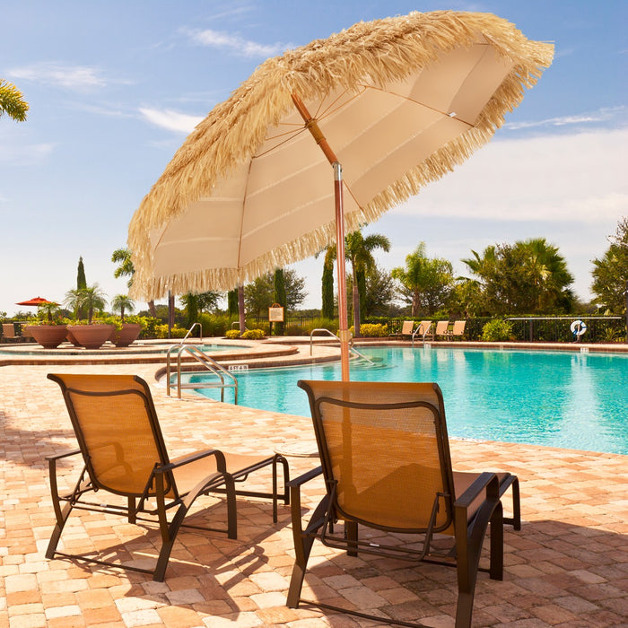 Invoking the essence of a Hawaiian retreat or tropical flair, our thatch-covered umbrella radiates an exotic atmosphere wherever it stands. While the umbrella base is not included, once paired, it can seamlessly integrate into a variety of environments from sandy shores to your own backyard sanctuary.