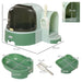 The product is available in a tasteful combination of light and dark green, complemented by black accents, and crafted from robust PP and PC materials. Its dimensions are crafted with care, ensuring every part from the internal space to the bottom tray perfectly accommodates your pet's needs. Transform your pet's daily routine with this elegant, multipurpose litter box that blends flawlessness with functionality.
