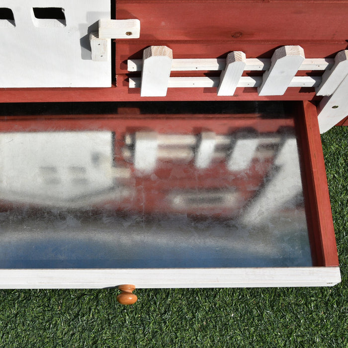 The design embraces a large living house with an adjoined run box, crafted from solid fir wood and steel wire, promising enduring strength and stability. Aesthetic touches, such as a quaint door and window, coupled with a wooden playpen, evoke a rustic and inviting vibe. The hutch's roof boasts asphalt coverings to provide ample weather protection, and a slide-out tray enables swift cleanups. The unit arrives ready for easy assembly.