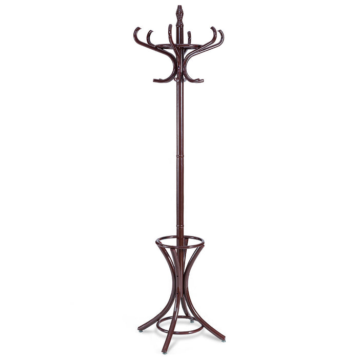 Bring a touch of sophistication and organization to your home with this exquisite floor-standing coat rack. With a delightful balance of function and style, it graces your entryway or any room, providing a perfect spot to hang your apparel with ease. The non obtrusive finish enhances the wood grain and will seamlessly blend with your existing decor.