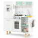 Constructed with child-safe MDF material and featuring burr-free edges and rounded corners, this kitchen is designed to prevent accidental injuries, ensuring playtime remains safe and worry-free. Additionally, the sturdy build of this set promises durability and resistance to everyday play, making it a lasting addition to your child's toy collection.