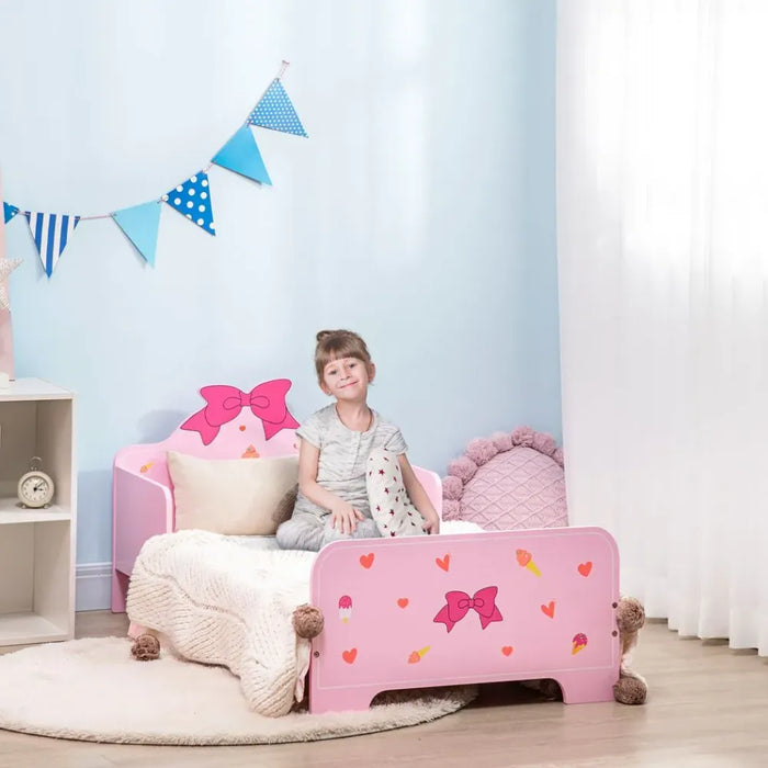 Princess-Themed Kids Toddler Bed w/ Cute Patterns, Safety Rails - Pink