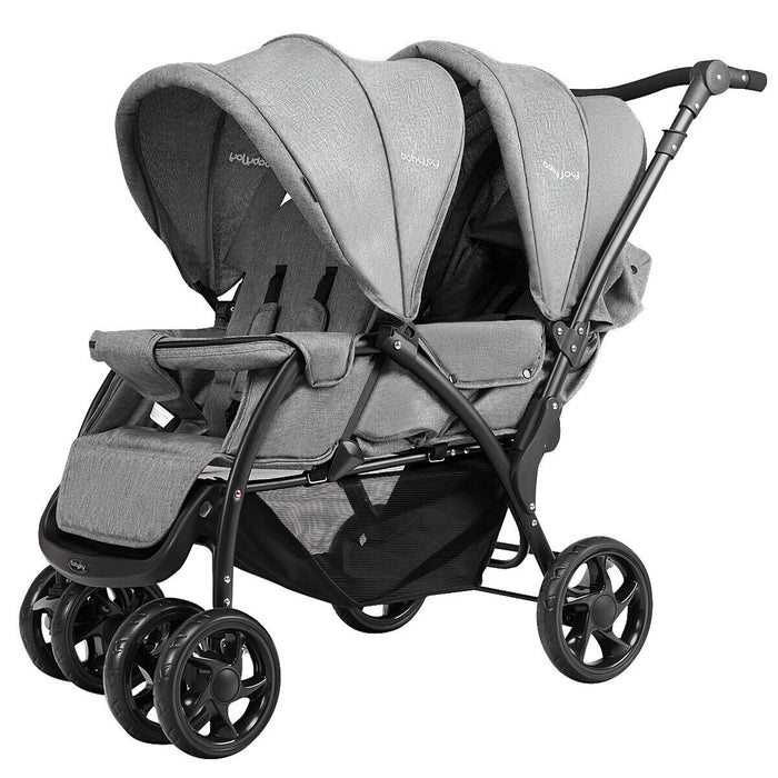 Pushchair Double Decker - Adjustable Backrest and Sunshade in Sleek Black - Ideal for Parents with Twins or Two Young Children