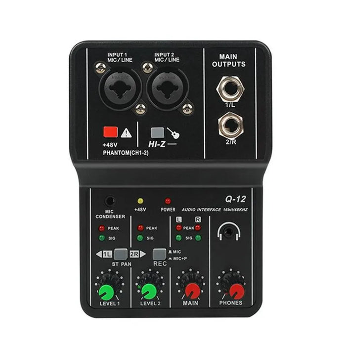 Give your audio workflow a professional upgrade with the Q-12 Professional Portable Mixer, a leading choice in the realm of sound enhancement and audio management. With the promise of rendering top-notch sound quality, this mixer is a top performer for live broadcasts, studio recordings, and digital content production. Its compact and portable design allows you to set up a pop-up studio anywhere, anytime.