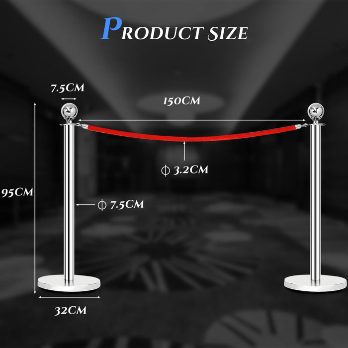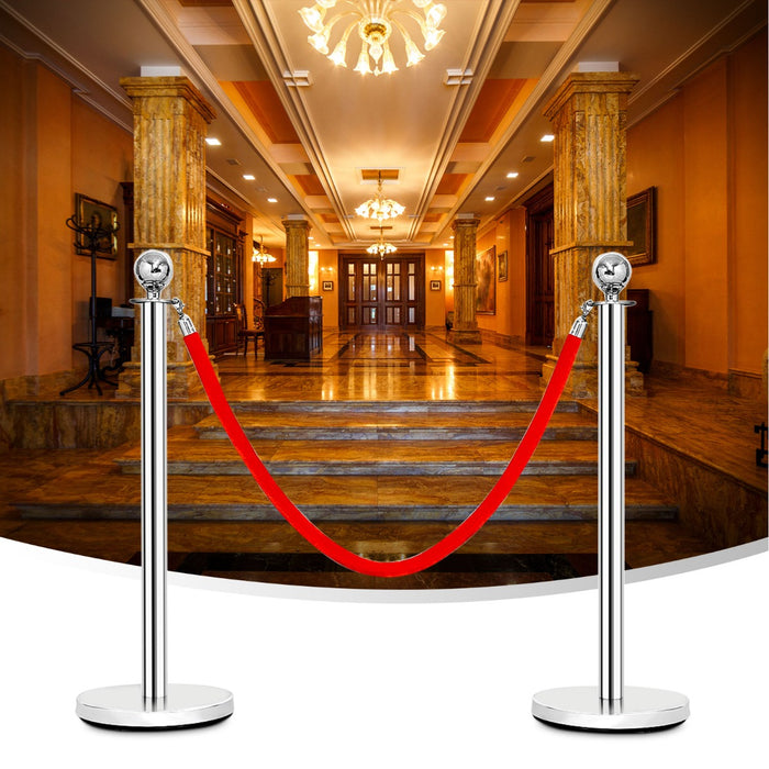 The striking red velvet ropes paired with lustrous silver posts serve more than a functional purpose; they enhance the visual appeal of your setup. The ropes span a generous length for wider barrier creation, and the polished upper balls add a distinguished touch of class that naturally draws respectful boundaries.