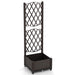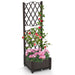 Colour: Brown Material: PE Overall Dimensions: 40 x 40 x122 cm (L x W x H) Size of the Planting Box: 36 x 36 x 18 cm (L x W x H) Weight Capacity:15 kg Net Weight: 2.5 kg Box QTY:1 Package Included: 1 x Garden Planter with Trellis 1 x Instruction Manual