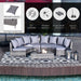 The set's stylish table echoes the gentle curvature of the sofa, forming a convenient surface for drinks, snacks, or your favorite outdoor decor. This seamless integration of form and function enhances your space's visual appeal while keeping essentials within reach. Measuring gracefully in proportion, the table complements the sofa's form, making it both a visual centerpiece and a practical addition.