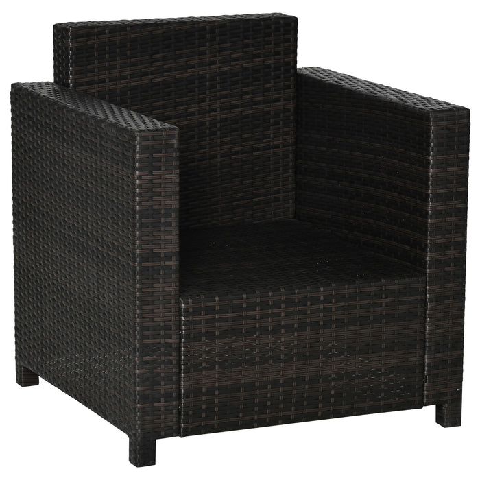 Transform your outdoor living area into a modern sanctuary with our matching sofa set, which includes this sumptuous armchair. Each piece is crafted with high-quality materials and thoughtful features, such as the anti-slip foot pads to safeguard your floors and zipper-equipped cushion covers for effortless maintenance. The set comes complete with a matching table, sporting a chic glass top that not only beautifies your space but also offers practicality.